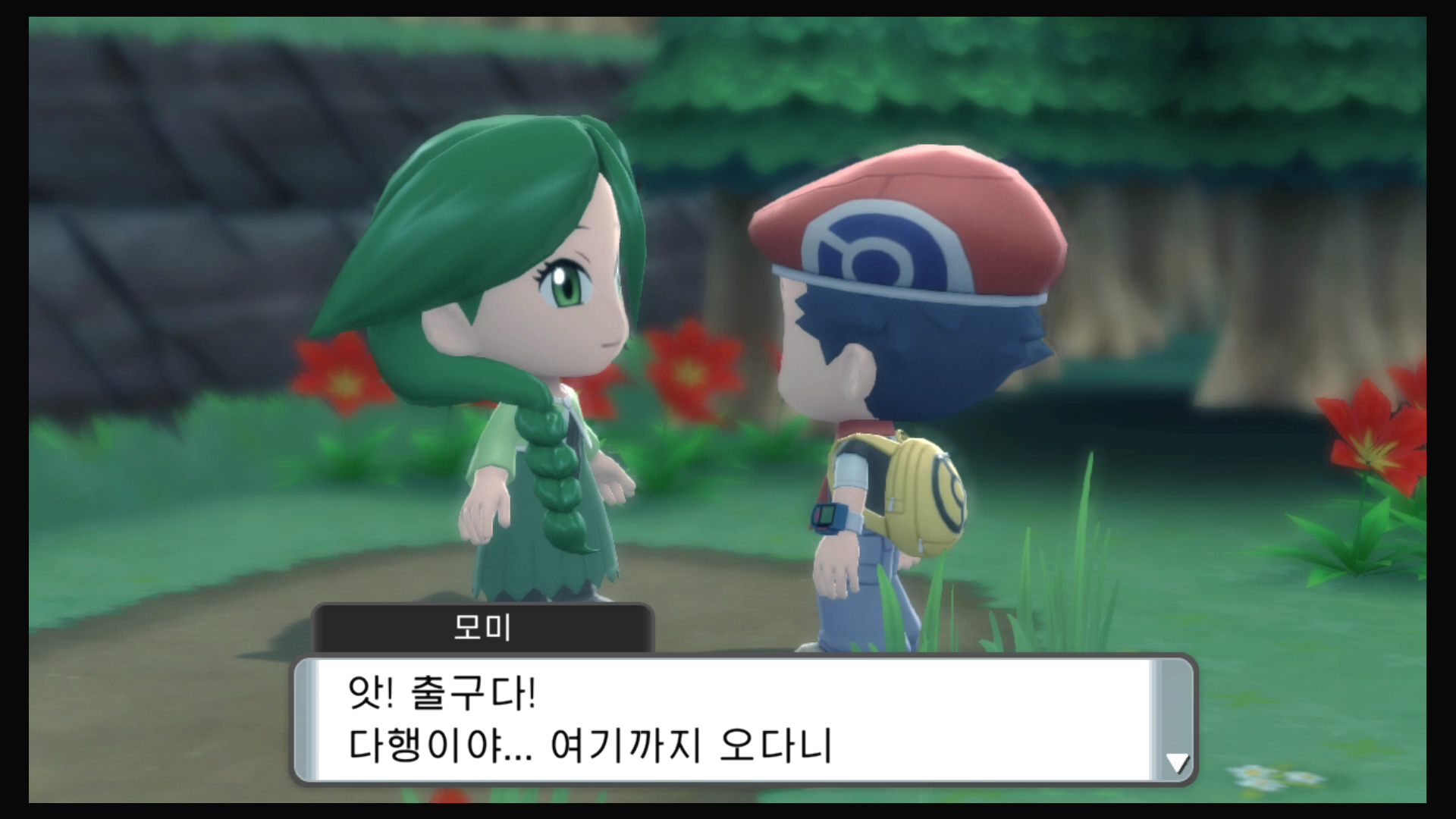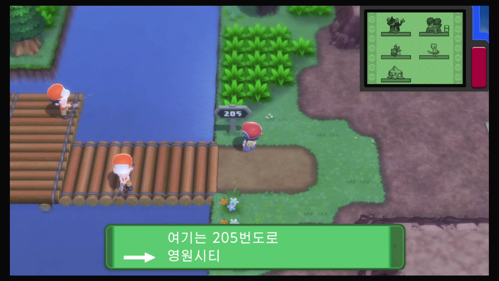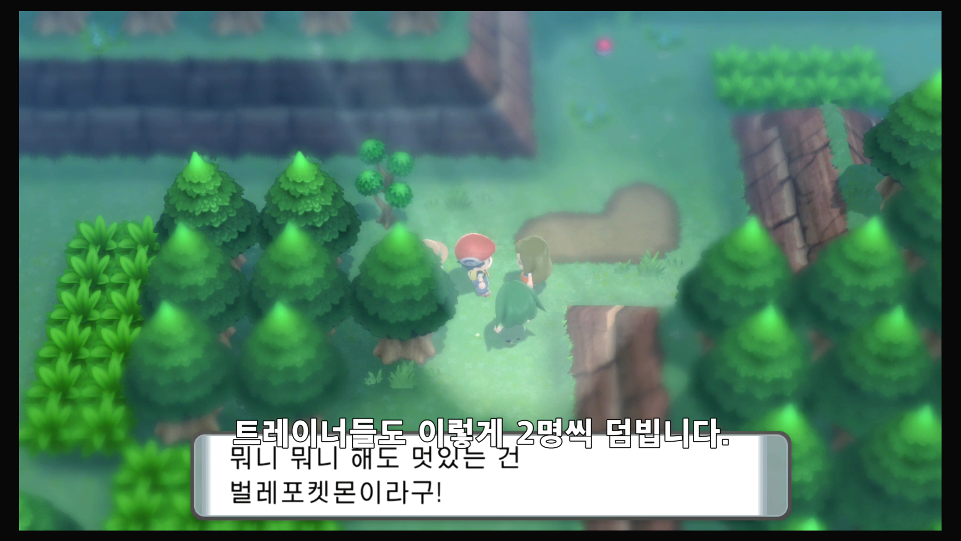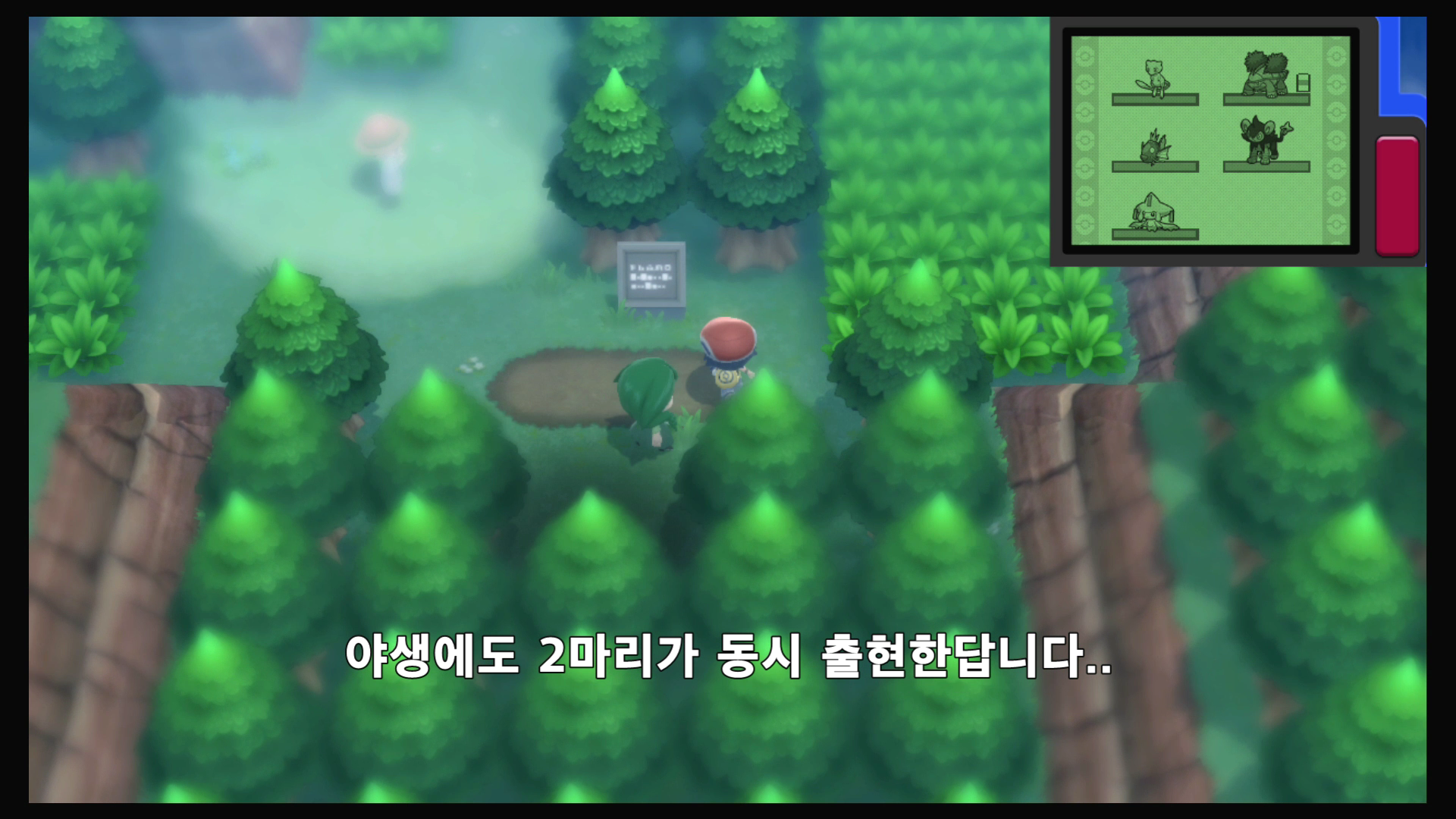 영원의숲은 같이 다니는게 야생도 트레이너도 2명과 2마리가 동시에 나와서 같이 다니자고 한다.