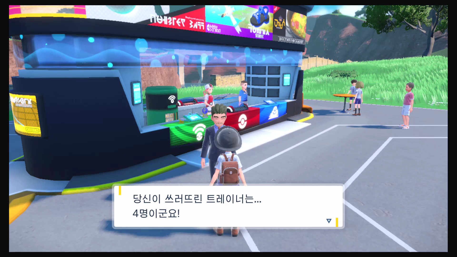학교앞 포켓몬센터에 가면 이상한 아저씨가 트레이너랑 몇번싸웠나 물어본다.