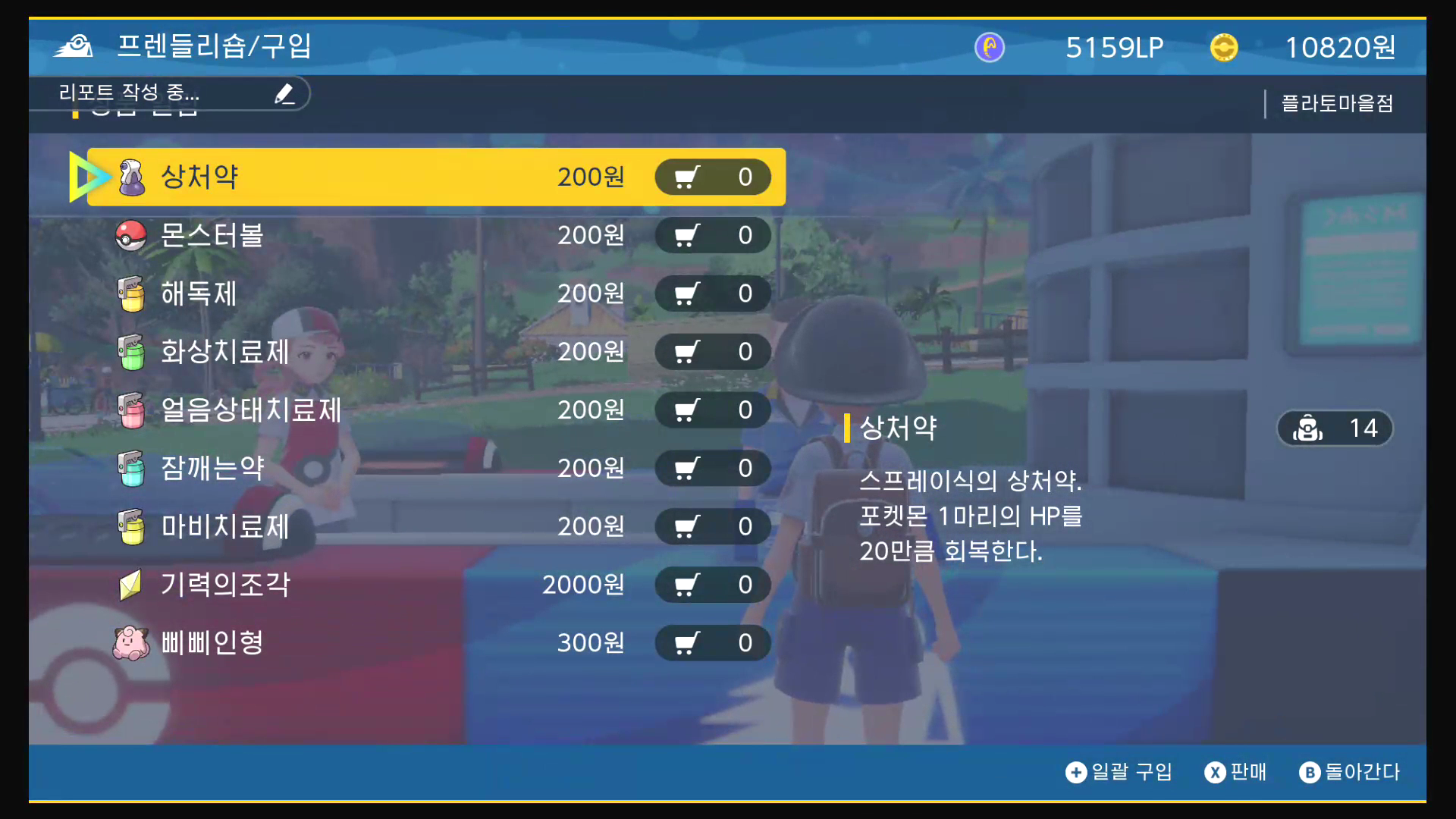 이제 R을 누르면 선두포켓몬이 알아서 싸우고 아이템도 주워온다. 이미 아이템 줍기랑 다 시전해봤지만