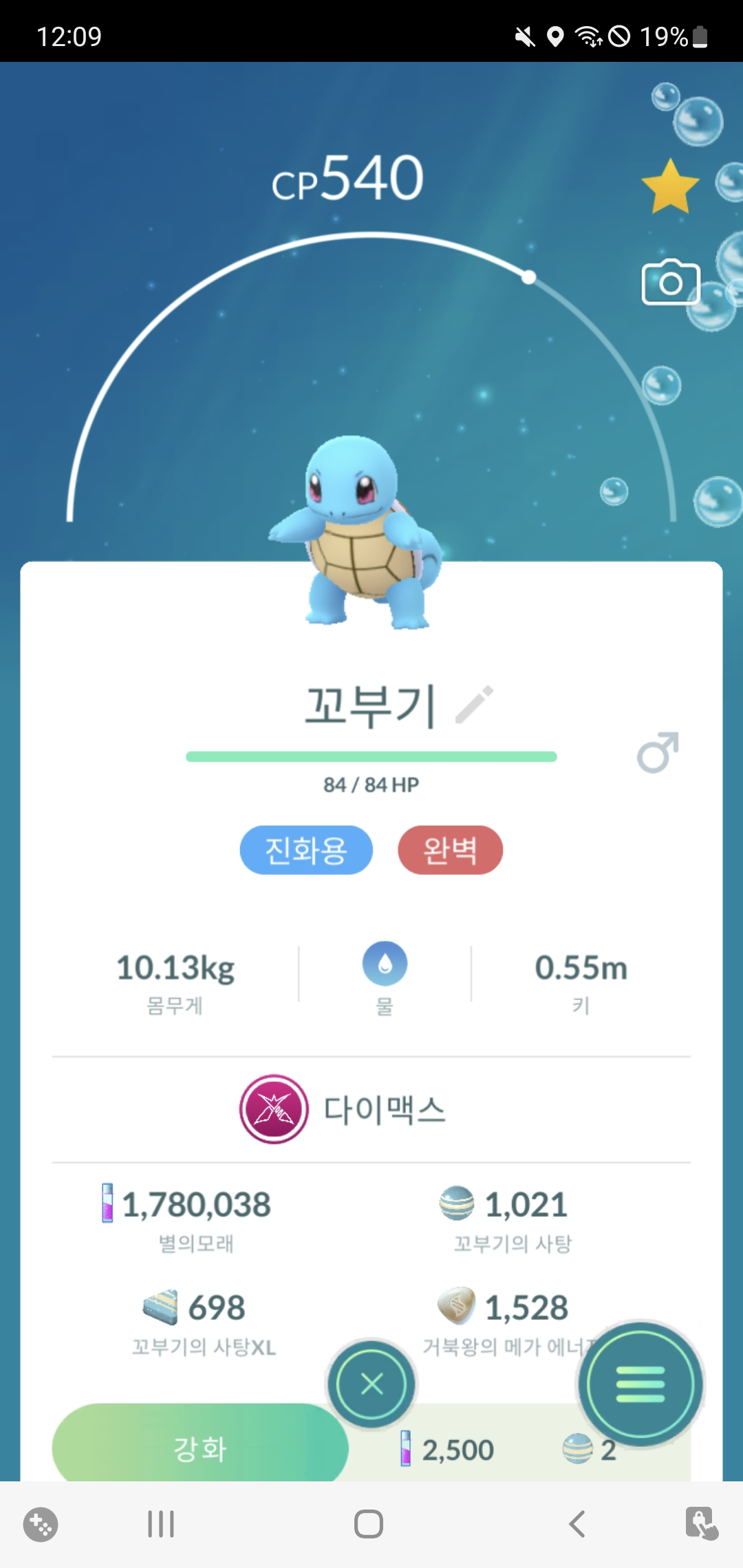 흑흑 어쨋든 고생끝에 제부도에 놀러간 날 꼬부기를 잡았는데 cp상태가??? 하면서 완벽 꼬부기를 획득했다..