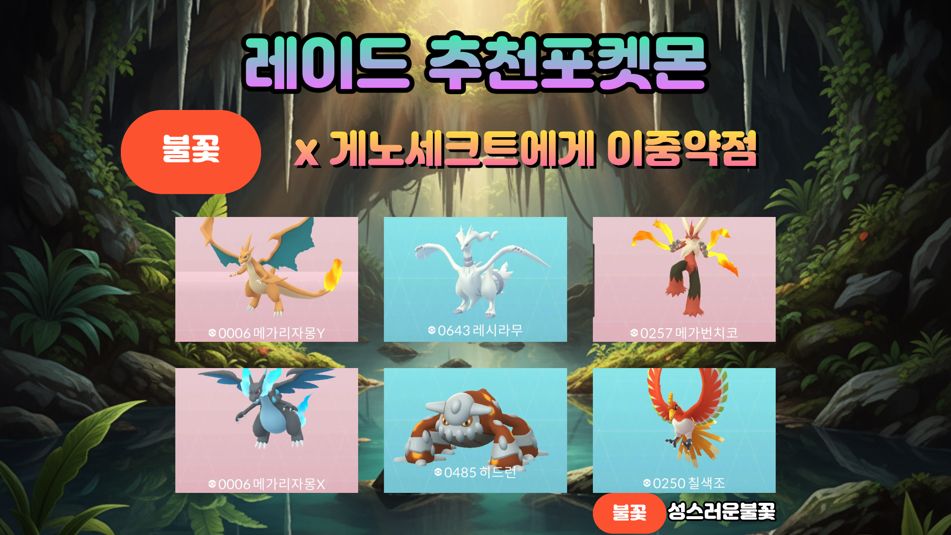 불꽃에 이중약점과 낮은 내구도로 1~2인 클리어도 가능할 정도로 난이도가 낮은 포켓몬입니다.