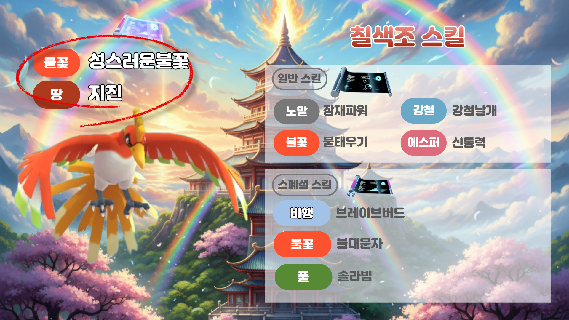 칠색조는 2세대 포켓몬이고 도감번호는 250번의 무지개색포켓몬입니다.